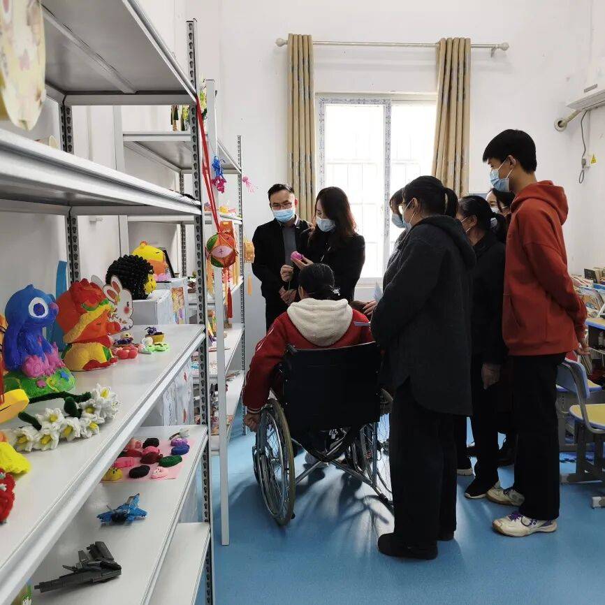 捐赠仪式后,大家与孩子们亲切互动,一同游戏。活动室里充满了欢声笑语,暖意融融。随后,爱心团队参观了儿童手工坊,观赏孩子们制作的串珠手串、彩绘石膏娃娃、团扇等手工作品。一件件充满童真与想象力的作品,吸引不少人驻足细看,感叹孩子们的动手能力与艺术天赋。活动现场,一名儿童还即兴演奏钢琴曲,琴声流淌,温暖人心。